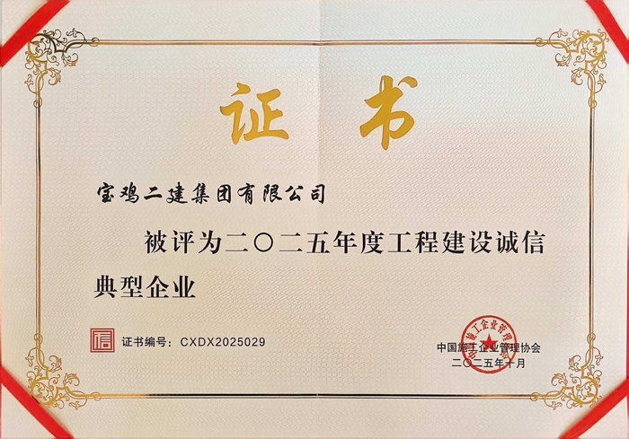 2025年度工程建设诚信典型企业-公司荣誉-企业荣誉-宝鸡二建集团有限公司