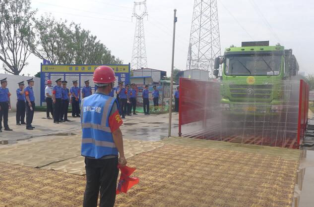 现场讲解员从门口围挡设置太阳能安全警示灯、扬尘污染防治包抓公示牌、门口降尘措施、环境检测系统、治污减霾承诺书、临边围挡喷淋系统、雾泡、抑尘洒水车、车辆过水槽、全自动冲洗台、门禁系统,密目网遮盖裸露场地、施工便道硬化、垃圾清扫、洒水扬尘、渣土清运车辆管理等管理环节一一进行了介绍。由于举措到位、管理到位,从而有效防止场内扬尘污染的产生,达到政府环保要求。