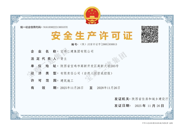 安全生产许可证-企业资质-企业概况-宝鸡二建集团有限公司