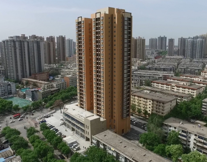 本工程位于咸阳市文汇东路6号,西藏民族大学校区内,南临文汇东路主干道,西临新兴北路,交通便利。本工程地下1层,地上27层,1-3层为商业用房,4-27层为住宅,共计240户。建筑总高度86.25m,建筑面积26176㎡,其中地下一层2378㎡,1-3层裙房5093㎡,人防面积852㎡。建筑和安装工程造价约7600万,决算7100万。工程投入使用以来,各项功能良好,系统运行正常,与周围环境相融合,成为西藏民族大学又一重要建筑,得到校内外各界高度评价,用户非常满意。