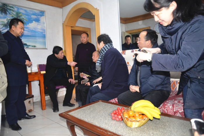 1月19日,陕西省住房和城乡建设厅副厅长茹广生、建筑市场管理办公室主任张丹、人事处副处长任晓敏,市住建局副局长霍兆宁,市劳保统筹处主任李向文一行来公司慰问退休职工尚安民。公司董事长胥立、副总经理沈为民、副总会计师严海军陪同。