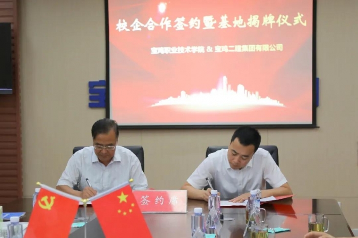 公司与宝鸡职业技术学院校企合作签约暨教育培训基地揭牌仪式在热烈的掌声中圆满完成。在深入学习贯彻习近平总书记“建党100周年”重要讲话精神的重要时刻,校企双方以实际行动落实大力发展职业教育,为服务宝鸡建筑产业发展进行了一次积极探索。双方将在未来的发展中,在人才培养、学科建设、教育培训、人才交流、科学研究、学术交流、社会服务等领域开展深度合作与交流。通过优势互补,产学结合,技术研发,成果转化,人才培养,相互促进,共同发展。