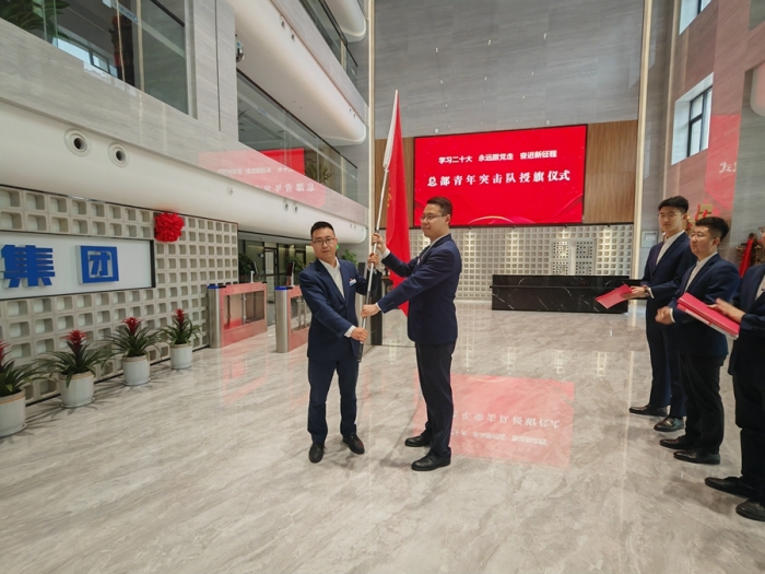 集团公司团委负责人、人力资源部副经理张小涛宣读公司团委《关于成立总部青年突击队的决定》并向青年突击队授旗。