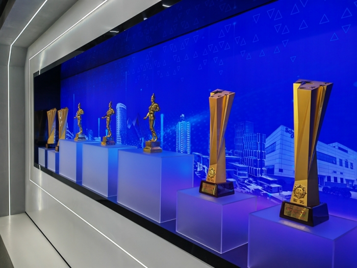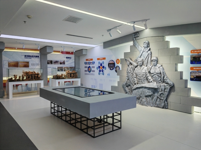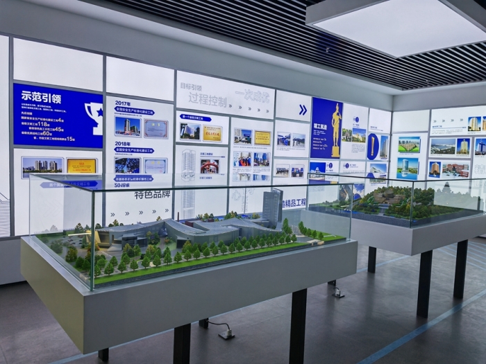 企业展览馆总面积516㎡,共分为四个展示单元,分别是:第一单元平地起高楼,主要展示集团公司历史沿革;第二单元风雨筑辉煌,主要展示集团公司壮阔征程;第三单元党建强引领,主要展示党建、企业文化;第四单元公司荣誉展示;通过实物、展板、沙盘、模型、视屏、雕塑等表现手法,以图、文、影、声并茂的形式全方位呈现集团公司走过的艰辛之路、创新之路、豪迈之路。